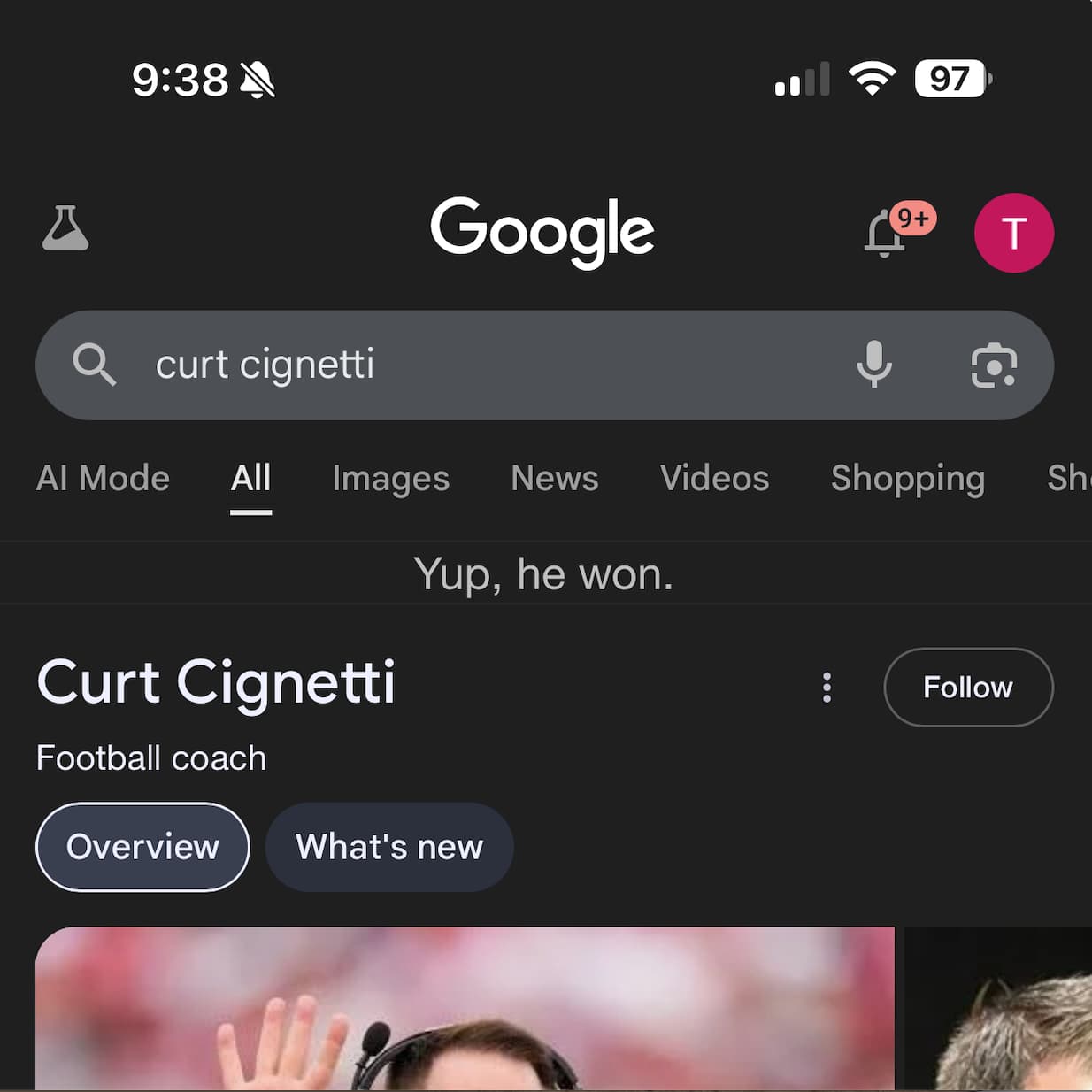 This text from Grandson Daniel Crum who was in Assembly Hall for the watch party (w/17k others) and reports:
